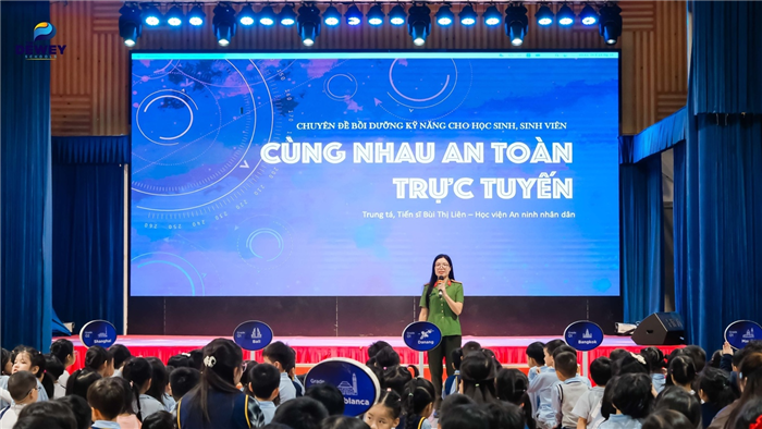 TS Bùi Thị Liên - Giảng viên Học viện ANND tập huấn kỹ năng an toàn trực tuyến cho học sinh trường Liên cấp Dewey, Cầu Giấy, Hà Nội.