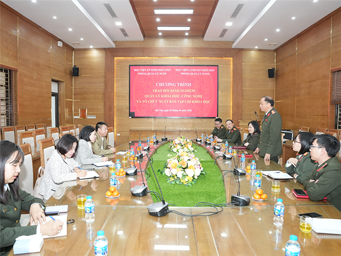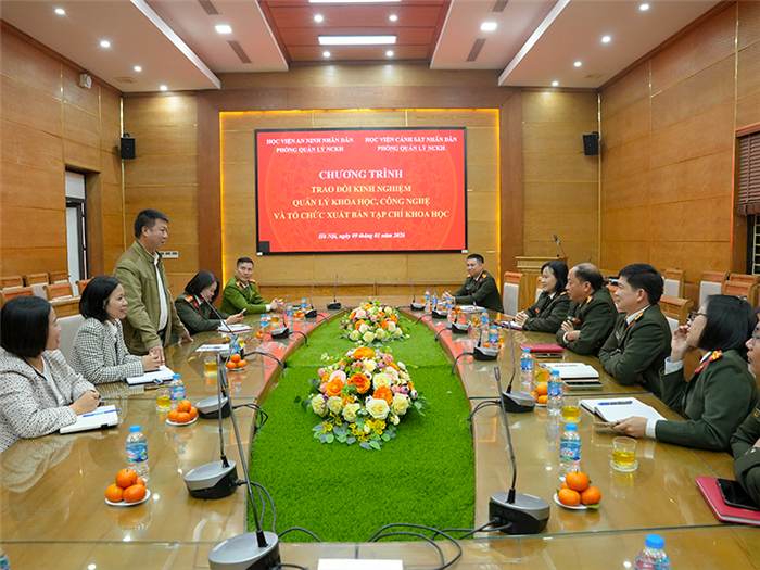 Ngày 09/01/2026, thực hiện Chương trình công tác năm học, Phòng Quản lý khoa học Học viện An ninh nhân dân và phối hợp với Phòng Quản lý khoa học Học viện Cảnh sát nhân dân tổ chức chương trình trao đổi kinh nghiệm quản lý khoa học công nghệ và tổ chức xuất bản tạp chí khoa học.