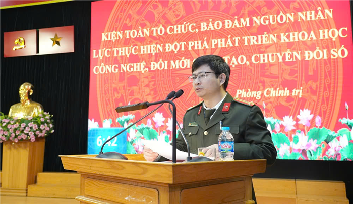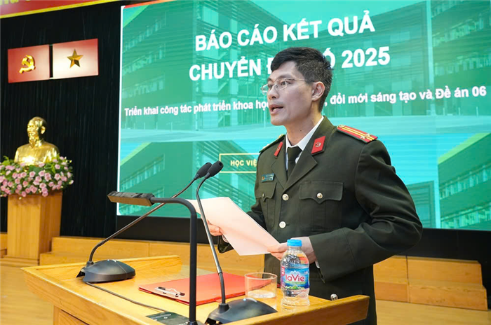 Tại Hội nghị, được sự uỷ quyền của Giám đốc Học viện, TS, Trung tá Trần Nghi Phú - Phó Chánh Văn phòng Học viện đã trình bày tóm tắt Báo cáo tổng kết công tác chuyển đổi số của Học viện trong năm 2025.