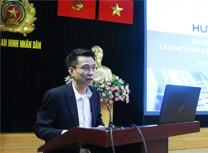 PGS.TS, Thượng tá Nguyễn Hồng Thái, Phó Giám đốc Học viện An ninh nhân dân chủ trì buổi báo cáo.
