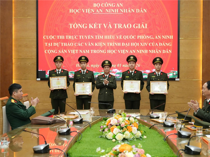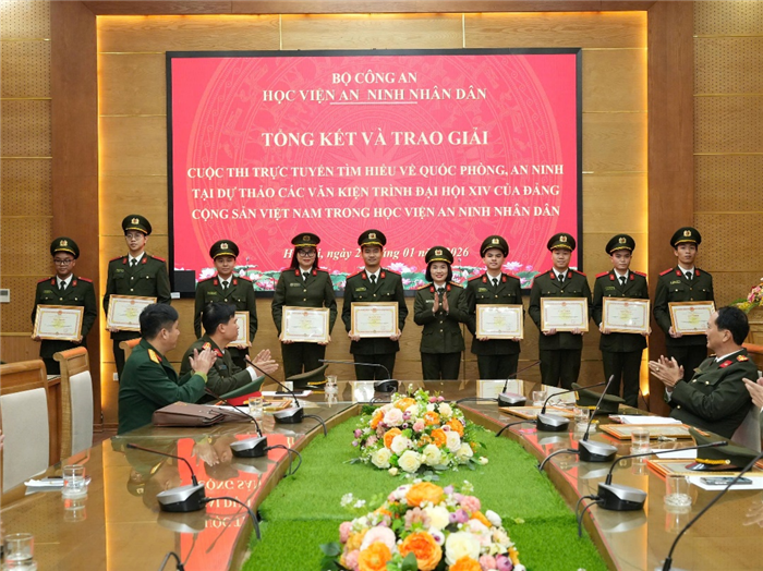Ngày 22/01/2026, Học viện An ninh nhân dân tổ chức Lễ tổng kết và trao giải Cuộc thi trực tuyến tìm hiểu về quốc phòng, an ninh tại Dự thảo các văn kiện trình Đại hội XIV của Đảng Cộng sản Việt Nam. PGS.TS, Thượng tá Nguyễn Hồng Thái, Phó Giám đốc Học viện An ninh nhân dân, Trưởng Ban tổ chức Cuộc thi chủ trì buổi Lễ.