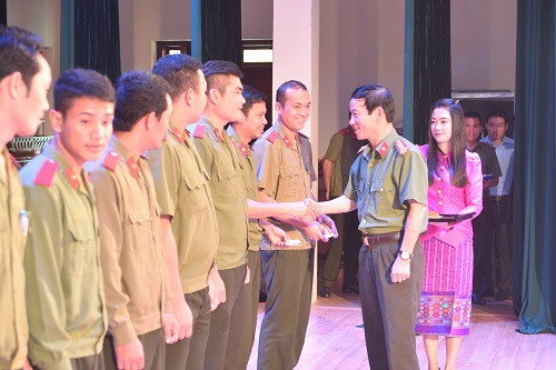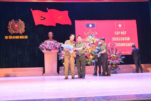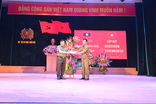 Phát biểu tại buổi lễ, đồng chí Thiếu tướng GS.TS Lê Minh Hùng – Phó Bí thư Đảng ủy, Phó Giám đốc Học viện đã ôn lại truyền thống tốt đẹp giữa hai Đảng, hai Nhà nước, giữa Bộ Công an Việt Nam và Bộ An ninh Lào. Đặc biệt là truyền thống của Học viện ANND trong đào tạo cán bộ an ninh cho nước bạn Lào và nhấn mạnh: "trong năm học vừa qua, tập thể Lưu học viên Lào đã có nhiều cố gắng, nỗ lực khắc phục khó khăn, giành được nhiều thành tích trong học tập, rèn luyện. Học viện mong muốn Lưu học viên Lào cùng với học viên Việt Nam thi đua học tập tốt, tích cực rèn luyện để trở thành những cán bộ An ninh có bản lĩnh chính trị, năng lực nghiệp vụ vững vàng để khi trở về nước sẽ góp phần vào sự nghiệp bảo vệ an ninh quốc gia của mình". Đồng chí Phó Giám đốc đã tặng hoa và quà của Học viện cho học viên Lào và chúc tình đoàn kết đặc biệt giữa hai đất nước Việt Nam - Lào mãi mãi xanh tươi, đời đời bền vững.