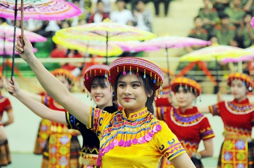 Những sắc màu vùng cao được các bạn Trường Văn hóa I phối khéo léo trên nền nhạc sôi động.