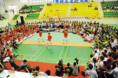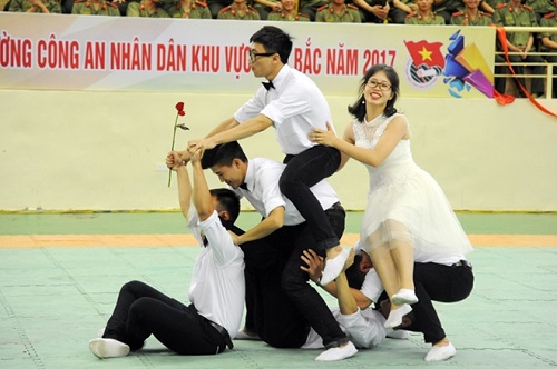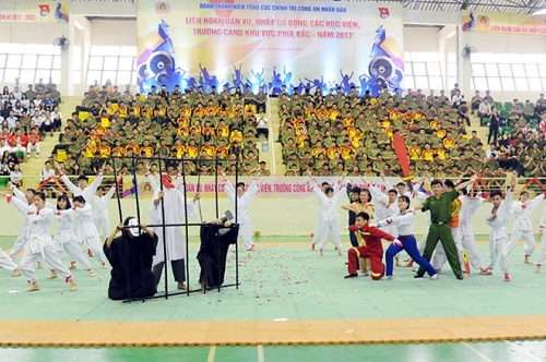 Buổi liên hoan dân vũ với sự góp mặt của gần 1.000 đoàn viên là sinh viên đến từ các đội thi của các Học viện, trường Công an nhân dân khu vực phía Bắc.