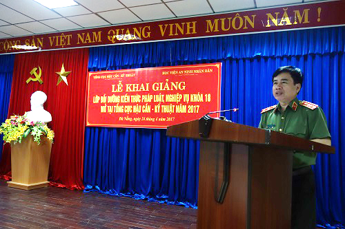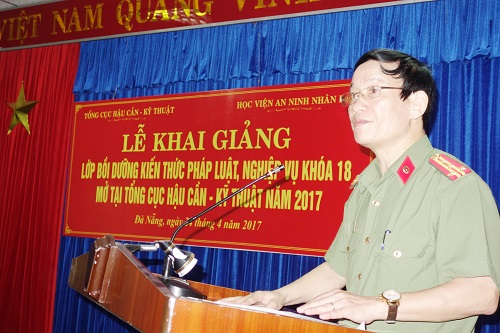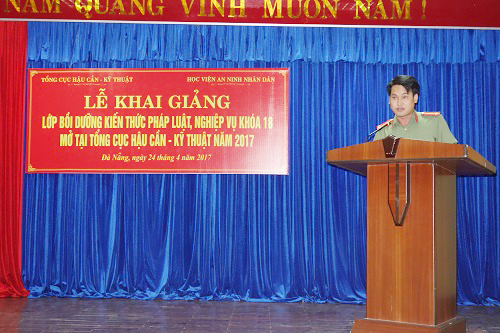 Thực hiện chương trình công tác năm học 2016-2017, ngày 19/4/2017, Học viện An ninh nhân dân phối hợp với Tổng cục Hậu Cần-Kỹ thuật tổ chức Lễ khai giảng Lớp bồi dưỡng kiến thức pháp luật, nghiệp vụ khóa 18 tại thành phố Đà Nẵng, năm 2017.