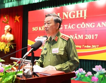 Tiếp tục chương trình làm việc của Hội nghị sơ kết công tác Công an 6 tháng đầu năm 2017, chiều 03/7, Thượng tướng Tô Lâm, Ủy viên Bộ Chính trị, Bí thư Đảng ủy Công an Trung ương (CATW), Bộ trưởng Bộ Công an đã quán triệt đến các đại biểu dự Hội nghị chủ trương "Kiện toàn tổ chức bộ máy Bộ Công an tinh gọn, hoạt động hiệu lực, hiệu quả".