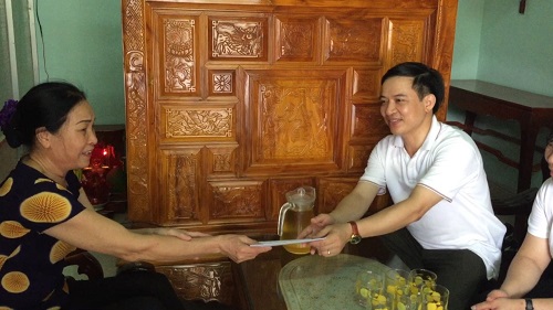 Đ/c Trung tá Phan Anh Tuấn, Trưởng phòng, trao quà cho bà Lê Thị Vân, Quảng Trị