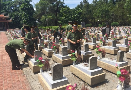 Tại Quảng Trị, Phòng đã đến đặt vòng hoa, dâng hương, tưởng niệm các anh hùng liệt sĩ tại Nghĩa trang liệt sĩ Trường Sơn và Nghĩa trang liệt sĩ Quốc gia Đường 9, nơi yên nghỉ vĩnh hằng của hơn hai vạn anh hùng liệt sĩ đã chiến đấu hy sinh cho sự nghiệp bảo vệ Tổ quốc. Giữa bầu trời trong xanh và cái nắng chói chang của mảnh đất miền Trung ngày hè tháng 6, buổi lễ diễn ra trang nghiêm, thành kính, thể hiện lòng biết ơn vô hạn đối với những người con ưu tú của Tổ quốc đã không tiếc máu xương, cống hiến trọn đời mình cho sự nghiệp giải phóng dân tộc, thống nhất đất nước. Sau lễ dâng hương từng thành viên của Đoàn đã đi thắp hương cho phần mộ các anh hùng liệt sĩ tại hai nghĩa trang.