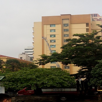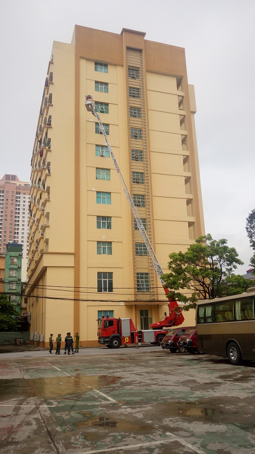 Sáng ngày 08/07/2017 Ban chỉ huy PCCC & PCLB Học viện An ninh nhân dân phối hợp với Phòng Cảnh sát PCCC số 9 Thành phố Hà Nội tổ chức khảo sát, xây dựng phương án tìm kiếm cứu nạn khi xảy ra cháy nổ tại các nhà cao tầng bằng xe thang chuyên dụng tại Học viện.