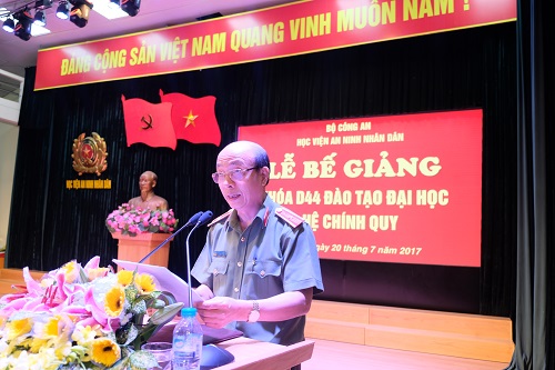 Phát biểu tại Lễ bế giảng, Trung tướng GS.TS Nguyễn Văn Ngọc - Bí thư Đảng ủy, Giám đốc Học viện ANND chúc mừng các tân sỹ quan khóa D44 đã hoàn thành khóa học với kết quả tốt. Đồng thời khẳng định, trong suốt quá trình học tập tại trường, các học viên đã được trang bị một cách có hệ thống các kiến thức về lý luận, chuyên ngành khoa học an ninh, công nghệ thông tin, ngôn ngữ… Đó là nền tảng ban đầu để các học viên tiếp tục học tập, nghiên cứu để vận dụng hiệu quả lý luận vào thực tiễn công tác, hoàn thành tốt nhiệm vụ mà đơn vị và ngành giao phó.