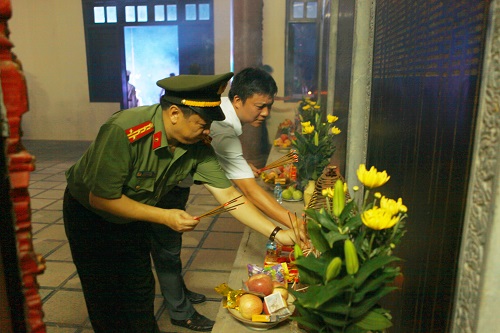 Tối cùng ngày, Đoàn công tác tổ chức thắp hương tại nghĩa trang liệt sỹ Huyện Văn Giang, thả đèn hoa đăng tưởng nhớ các anh hùng liệt sỹ. Hoạt động của Đoàn công tác đã thể hiện sự tri ân đối với các gia đình chính sách, gia đình có công với cách mạng, thể hiện được đạo lý “Uống nước nhớ nguồn”, tình cảm và trách nhiệm của cán bộ, chiến sỹ Học viện an ninh nhân dân đối với thương bệnh binh, thân nhân của các anh hùng liệt sỹ đã hy sinh trong sự nghiệp đấu tranh bảo vệ Tổ quốc.