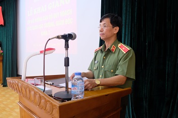 Thiếu tướng, PGS, TS Đỗ Ngọc Cẩn - Phó Tống cục trưởng Tổng cục Chính trị CAND phát biểu chỉ đạo tại Lễ khai giảng lớp học
