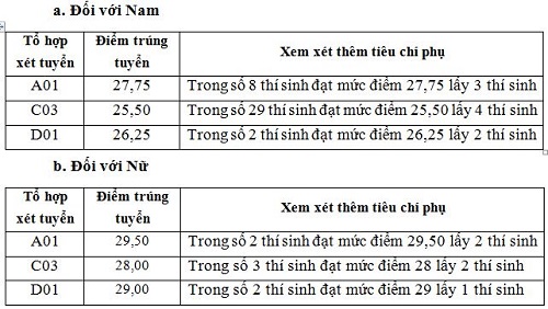 + Thứ hai, nếu vẫn vượt chỉ tiêu thì xét thí sinh có tổng điểm 03 môn (không tính điểm ưu tiên đối tượng, khu vực, điểm thưởng) chưa làm tròn, lấy từ cao xuống thấp cho đủ chỉ tiêu.
