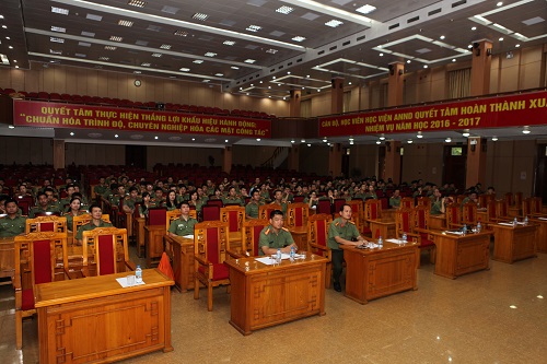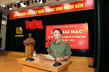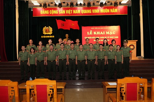 Thực hiện kế hoạch công tác năm học, ngày 24/8, Học viện ANND tổ chức khai mạc lớp tập huấn điều lệnh, quân sự, võ thuật CAND đợt 2 năm học 2017 - 2018 khối cán bộ, giáo viên.