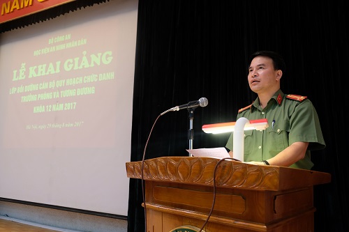 Thực hiện chương trình công tác năm học 2017 - 2018, ngày 29/8/2017 Học viện An ninh nhân dân tổ chức Lễ khai giảng Lớp Bồi dưỡng cán bộ quy hoạch chức danh Trưởng phòng và tương đương - Khóa 12.