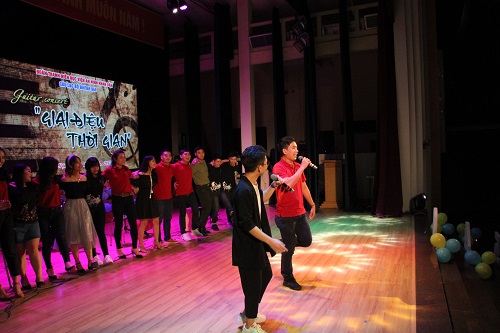 Guitar Concert “ Giai điệu thời gian” với các bài hát: “ Ấm áp tình quê Bác, Em ơi Hà Nội phố, Chiếc khăn Piêu,…” trẻ trung , sôi động song cũng tràn đầy xúc cảm đưa người nghe trở về những quãng thời gian đẹp đẽ nhất của tuổi trẻ qua điệu nhạc , bản đàn và giọng ca khỏe khoắn của những ca sĩ “ nghiệp dư” trong CLB guitar 945. Đặc biệt, đêm diễn còn có sự giao lưu của Đoàn Thanh niên Đại học ANND, Học viện Tài chính, CLB Kết nối yêu thương.