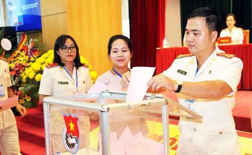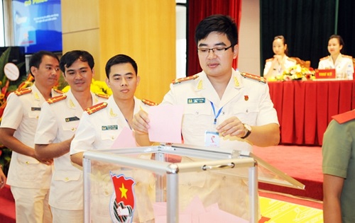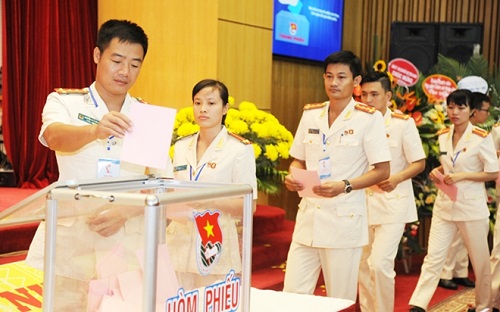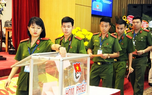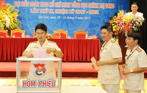 Các đại biểu bỏ phiếu bầu Ban Chấp hành Đoàn TN Tổng cục Chính trị CAND lần thứ IX.