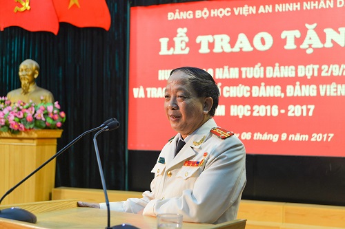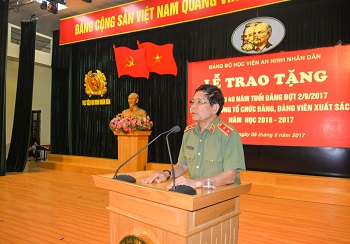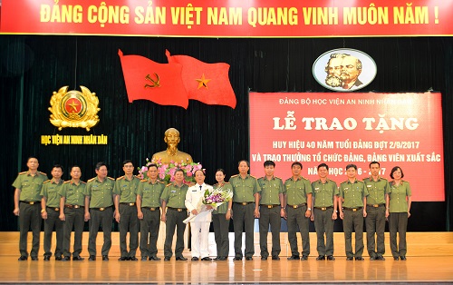 Đảng ủy Học viện An ninh nhân dân long trọng tổ chức Lễ trao tặng Huy hiệu Đảng đợt 02/9/2017 và trao thưởng cho tổ chức đảng, đảng viên có thành tích xuất sắc trong năm học 2016 - 2017
