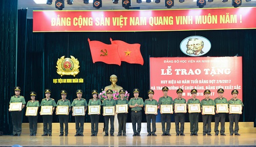 Ngày 06/9/2017, tại Hội trường lớn, Đảng ủy Học viện An ninh nhân dân long trọng tổ chức Lễ trao tặng Huy hiệu Đảng đợt 02/9/2017 và trao thưởng cho tổ chức đảng, đảng viên có thành tích xuất sắc trong năm học 2016 - 2017.