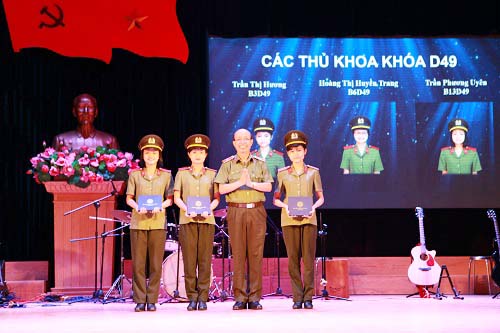 Mở đầu chương trình, Thiếu tướng Nguyễn Quý Khoát thay mặt Ban Giám đốc Học viện đã trao thưởng cho các học viên Trần Thị Hương ( thủ khoa đầu vào khối A1), Hoàng Thị Huyền Trang ( thủ khoa đầu vào khối C3) và Trần Phương Uyên ( thủ khoa đầu vào khối D1), đây là những học viên xuất sắc nhất ở các khối dự thi vào Học viện An ninh trong năm nay.