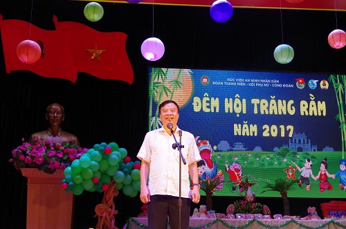Phát biểu Khai mạc "Đêm hội trăng rằm" năm 2017, Thiếu tướng, GS.TS Lê Minh Hùng - Phó Giám đốc Học viện chúc các cháu thiếu niên, nhi đồng đón Tết Trung thu vui vẻ, phấn đấu học giỏi, rèn luyện tốt, xứng đáng là con ngoan, trò giỏi, là cháu ngoan bác Hồ.