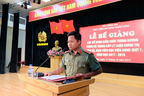 Thực hiện chương trình công tác năm học 2017 - 2018, ngày 17/10/2017, Học viện An ninh nhân dân tổ chức lễ Bế giảng lớp bổ sung kiến thức tương đương trình độ trung cấp lý luận chính trị.