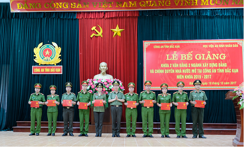 Thực hiện chương trình công tác năm học 2017-2018, ngày 18/10/2017, Học viện An ninh nhân dân tổ chức lễ Bế giảng lớp Văn bằng 2 - Chuyên ngành Xây dựng Đảng và chính quyền Nhà nước mở tại Công an tỉnh Bắc Kạn niên khoá 2015 - 2017.