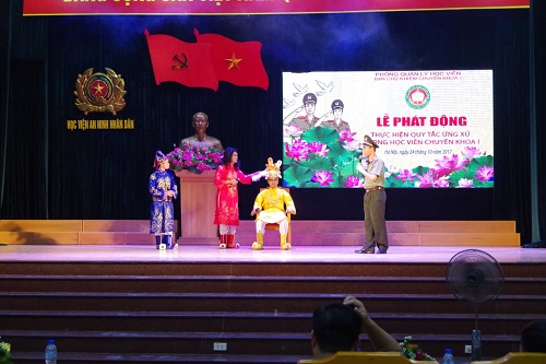 Chương trình Lễ phát động thực hiện quy tắc ứng xử của Công an nhân dân trong học viên CKI được tổ chức thông qua hình thức sân khấu hóa kết hợp với sử dụng các biện pháp tuyên truyền như: Băng rôn, khẩu hiệu về văn hóa ứng xử tại các khu vực nhà ở, ký túc xá học viên. Đây là một trong những hoạt động nhằm tăng cường phổ biến, quán triệt sâu sắc nội dung Thông tư số 27/TT-BCA ngày 22/08/2017 của Bộ trưởng Bộ Công quy định về quy tắc ứng xử của CAND gắn với việc thực hiện Chỉ thị số 07/CT-BCA-X11 ngày 26/10/2016 về “Tăng cường nâng cao văn hóa ứng xử CAND trong tình hình mới”.
