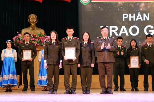 Ban tổ chức trao giải cho những đội xuất sắc trong Hội thi “Ánh sáng tháng Mười”.