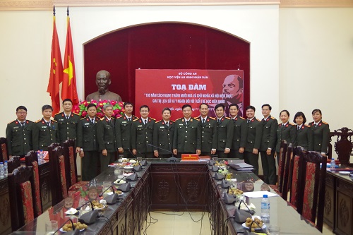 Hưởng ứng các hoạt động của toàn Đảng kỷ niệm 100 năm Cách mạng Tháng mười Nga (7/11/1917 - 7/11/2017), Học viện ANND đã ban hành kế hoạch tuyên truyền và tổ chức đợt sinh hoạt chính trị nhân kỷ niệm 100 năm Cách mạng Tháng mười Nga trong cán bộ, giảng viên, công nhân viên và học viên toàn Học viện. Theo kế hoạch, Học viện đã tổ chức tọa đàm với chủ đề “100 năm cách mạng Tháng Mười Nga và chủ nghĩa xã hội hiện thực - giá trị lịch sử và ý nghĩa đối với tuổi trẻ Học viện ANND”; tổ chức chiếu phim tư liệu “Ánh sáng Tháng Mười Nga”; tổ chức cuộc thi “Ánh sáng Tháng Mười”; tổ chức báo cáo chuyên đề “Ý nghĩa lịch sử và tác động của cách mạng Tháng Mười Nga đối với cách mạng Việt Nam trong giai đoạn hiện nay”; tổ chức tuyên truyền qua băng dôn, khẩu hiệu và các phương tiện thông tin truyền thông.