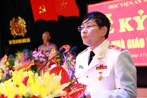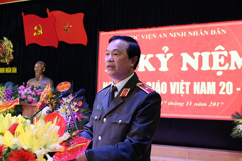 Trong diễn văn tại buổi Lễ kỷ niệm 20/11/2017, thay mặt Đảng ủy, Ban Giám đốc Học viện; Trung tướng, Nhà giáo nhân dân, GS.TS Nguyễn Văn Ngọc - Bí Thư Đảng ủy, Giám đốc Học viện đã ôn lại truyền thống 72 năm xây dựng và phát triển của Học viện, đội ngũ cán bộ, giảng viên của nhà trường không ngừng lớn mạnh. Đến nay Học viện đã trở thành một trung tâm đào tạo và nghiên cứu khoa học lớn của Ngành Công an và của quốc gia. Với đội ngũ với nhiều nhà giáo có trình độ GS, PGS, TS đã đảm đương nhiệm vụ đào tạo cho hàng chục ngàn học viên, cao học, nghiên cứu sinh.