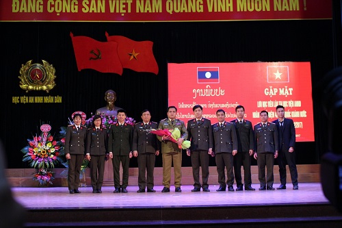 Đồng chí Trung tướng, GS.TS Nguyễn Văn Ngọc – Bí thư Đảng ủy, Giám đốc Học viện ANND dự và chủ trì buổi lễ. Đến dự buổi gặp mặt còn có đồng chí Đại tá Chăng Thoong Hông Khăm – Trưởng cơ quan đại diện Bộ An ninh Lào tại Việt Nam, đồng chí Đại tá Bùi Văn Đức – Phó Cục trưởng Cục Bảo vệ Chính trị 4 – Tổng cục An ninh, đại diện lãnh đạo các phòng chức năng thuộc Cục X12, X14, V12, A66 – Bộ Công an. Cùng dự còn có các đồng chí trong Đảng ủy, Ban Giám đốc Học viện, đại diện lãnh đạo Viện Khoa học An ninh và các đơn vị trực thuộc Viên, các khoa, phòng của Học viện, đại diện học viên Việt Nam thuộc các chuyên khoa cùng toàn thể Lưu học viên Lào đang nghiên cứu, học tập các hệ, các loại hình đào tạo tại Học viện ANND.