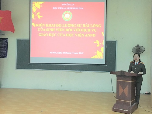 Thực hiện chủ trương của Bộ Giáo dục và Đào tạo về việc triển khai đo lường sự hài lòng của người dân đối với dịch vụ giáo dục công và triển khai Kế hoạch số 9030/T31-KTHI, ngày 23 tháng 11 năm 2017 của Giám đốc Học viện về việc đo lường sự hài lòng của sinh viên đối với dịch vụ giáo dục của Học viện An ninh nhân dân, ngày 29 tháng 11 năm 2017 tại Hội trường 107 N6A, đại diện Ban Chỉ đạo, Ban Thư kí, dưới sự chủ trì của đồng chí TS Phan Anh Tuấn - Ủy viên Thường trực Ban Chỉ đạo - Trưởng phòng Khảo thí và Đảm bảo chất lượng đào tạo đã triển khai lấy phiếu khảo sát đo lường sự hài lòng của sinh viên đối với dịch vụ giáo dục của Học viện An ninh nhân dân.