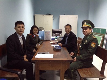 Đồng chí Chu Thị Cúc và đồng chí Trần Đắc Anh phối hợp với Bộ đội biên phòng bàn giao lưu sinh viên Lào cho đồng chí Khăm Sỷ - Trưởng phòng Đào tạo Học viện AN Quốc gia Lào tại cửa khẩu quốc tế Cầu Treo |