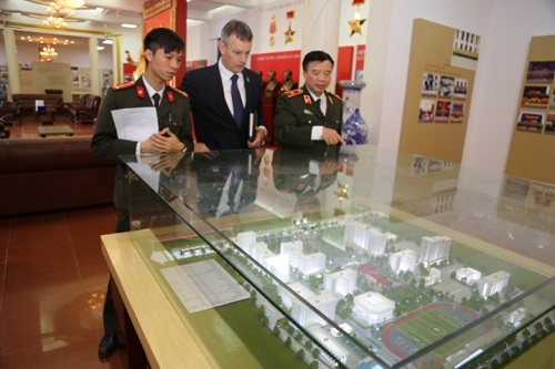 Đại tá Roger Brown thăm quan Phòng truyền thống của Học viện An ninh nhân dân