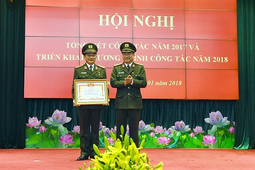 Thứ trưởng Nguyễn Văn Thành trao Cờ thi đua của Bộ Công an tặng các đơn vị có thành tích xuất sắc trong phong trào thi đua “Vì an ninh Tổ quốc” năm 2017.