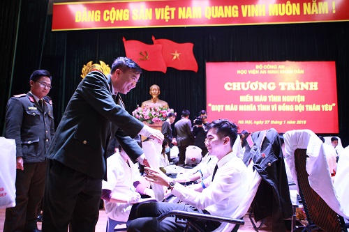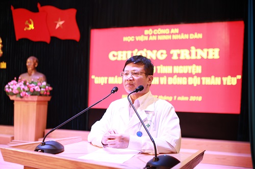 Tại buổi Lễ, đồng chí Phó Giám đốc Học viện đã nhắn nhủ tới các học viên tham dự buổi tình nguyện: Cán bộ, chiến sỹ trong lực lượng Công an đang ngày đêm tham gia chiến đấu chống lại các loại tội phạm. Trong lúc thực hiện nhiệm vụ, có những đồng chí, đồng đội không may bị thương và trong cuộc sống đời thường cũng có nhiều đồng chí bị tai nạn, bị bệnh hiểm nghèo...những chiến sỹ kém may mắn đang rất cần đến những giọt máu tình nghĩa của các đồng chí.