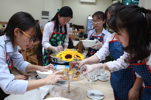 Các học viên đang trình chế biến và trinh bày bài thi của đội mình