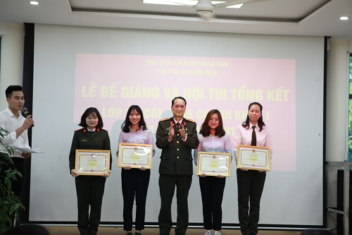 08 đội thi đã mang đến những tác phẩm đặc sắc, ý nghĩa với sự sáng tạo và đầu tư công phu. Tại buổi Lễ, Thiếu tướng, GS.TS Lê Minh Hùng - Phó Bí thư Đảng ủy, Phó Giám đốc Học viện đã biểu dương tinh thần học tập của các học viện và đánh giá cao công tác tổ chức lớp học. Đồng thời, đồng chí Phó Giám đốc Học viện yêu cầu Hội Phụ nữ Học viện trong thời gian tới tích cực tổ chức nhiều lớp học trên các lĩnh vực khác nhằm trang bị hội viên những kỹ năng cơ bản cần thiết nhất, hướng đến hình ảnh phụ nữ Học viện ANND giỏi việc nước, đảm việc nhà./.