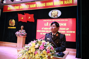 Đảng ủy Học viện An ninh nhân dân tổ chức Lễ mít tinh kỷ niệm 88 năm Ngày thành lập Đảng Cộng sản Việt Nam (3/2/1930 - 3/2/2018) và trao tặng huy hiệu Đảng đợt 3/2/2018