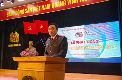 Phát biểu Khởi động Tháng Thanh niên, đồng chí Dương Xuân Khiêm - Bí thư Đoàn Thanh niên Học viện ANND nhấn mạnh: " Tháng Thanh niên năm 2018 của Tuổi trẻ Học viện ANND phải được triển khai thực hiện một cách thiết thực, có sức lan tỏa trong đoàn viên, thanh niên, khẳng định tính tiên phong, trách nhiệm của thanh niên trong toàn Học viện, đặc biệt là trong thời điểm tuổi trẻ CAND đang ra sức thi đua lập thành tích chào mừng 70 năm ngày Chủ tịch Hồ Chí Minh có Sáu điều dạy CAND ".
