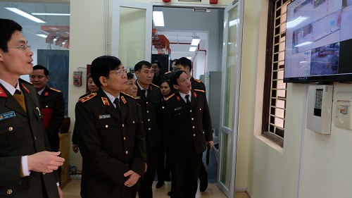 Ban Giám đốc Học viện Học viện An ninh nhân dân theo dõi camera giám sát toàn Học viện