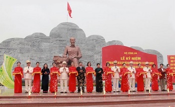 Chủ tịch Quốc hội Nguyễn Thị Kim Ngân; Thượng tướng Tô Lâm, Bộ trưởng Bộ Công an cùng các đại biểu cắt băng khánh thành Khu lưu niệm Sáu điều Bác Hồ dạy CAND. |