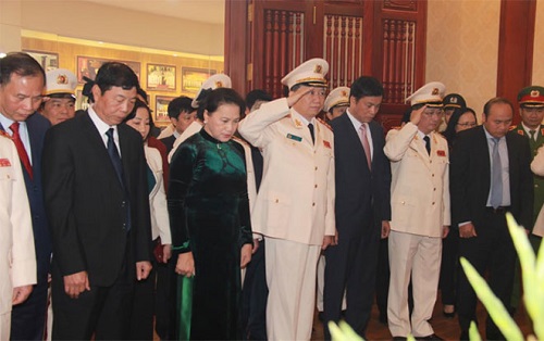 Chủ tịch Quốc hội Nguyễn Thị Kim Ngân; Bộ trưởng Bộ Công an Tô Lâm với các đại biểu dâng hương tưởng niệm Bác Hồ.