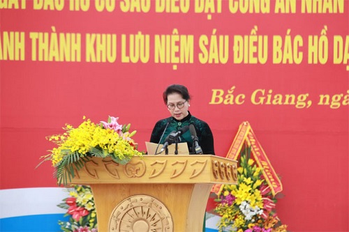 Chủ tịch Quốc hội Nguyễn Thị Kim Ngân cũng ghi nhận, biểu dương Đảng ủy Công an Trung ương, Bộ Công an đã khẩn trương xây dựng và khánh thành Khu lưu niệm Sáu điều Bác Hồ dạy CAND đúng dịp kỷ niệm 70 năm Ngày Bác Hồ có Sáu điều dạy CAND ngay tại địa danh lịch sử, nơi lần đầu tiên lực lượng CAND đón nhận Sáu điều Bác Hồ dạy. Đây là công trình có ý nghĩa, thể hiện sự tri ân sâu sắc của Đảng, Nhà nước, các thế hệ tướng lĩnh, sỹ quan, CBCS CAND, cấp ủy, chính quyền các cấp tỉnh Bắc Giang, huyện Tân Yên, xã Nhã Nam đối với công lao to lớn của Chủ tịch Hồ Chí Minh, góp phần quan trọng nghiên cứu, tuyên truyền, giáo dục về tư tưởng, đạo đức, phong cách Hồ Chí Minh; bảo vệ, phát huy giá trị văn hóa, lịch sử, truyền thống vẻ vang của lực lượng CAND.