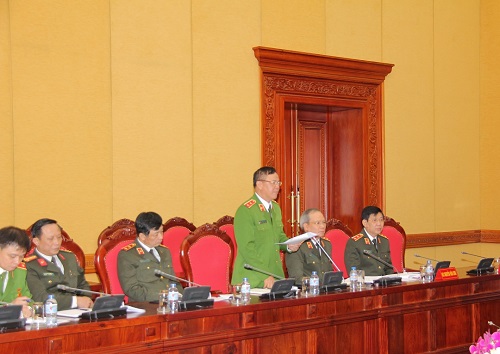 Trình bày báo cáo tiến độ thực hiện Đề án, đại diện lãnh đạo Tổng cục Chính trị Công an nhân dân (CAND) cho biết: Thực hiện chỉ đạo của đồng chí Bộ trưởng, Tổng cục Chính trị CAND đã xây dựng dự thảo Nghị quyết của Bộ Chính trị về một số vấn đề tiếp tục đổi mới, sắp xếp tổ chức bộ máy Bộ Công an tinh gọn, hoạt động hiệu lực, hiệu quả; tổng hợp ý kiến báo cáo đồng chí Bộ trưởng gửi Văn phòng Trung ương Đảng. Sau phiên họp Bộ Chính trị, Văn phòng Trung ương Đảng có tham gia một số ý kiến, Tổng cục Chính trị CAND báo cáo Bộ trưởng cho ý kiến hoàn thiện và đã gửi Văn phòng Trung ương Đảng để trình ban hành.