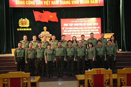 Năm 2018, nhằm tiếp tục đẩy mạnh thực hiện cuộc vận động trong toàn lực lượng CAND, nâng cao nhận thức cho cán bộ, chiến sĩ, Bộ trưởng Bộ Công an đã ban hành Kế hoạch số 06 về học tập chuyên đề với nội dung: “Xây dựng phong cách, tác phong công tác của người đứng đầu, của cán bộ, đảng viên”. Thực hiện chỉ đạo của lãnh đạo Bộ Công an và Tổng cục Chính trị CAND, nhằm kịp thời phổ biến, quán triệt nội dung sinh hoạt chuyên đề năm 2018 trong cán bộ, giảng viên, công nhân viên toàn Học viện; Giám đốc Học viện ANND đã ban hành Kế hoạch số 937 về học tập chuyên đề năm 2018 trong toàn Học viện. Theo đó, Học viện tổ chức buổi học tập chuyên đề “Xây dựng phong cách, tác phong công tác của người đứng đầu, của cán bộ, đảng viên” thông qua hình thức chiếu phim tư liệu do Tổng cục Chính trị CAND phát hành.