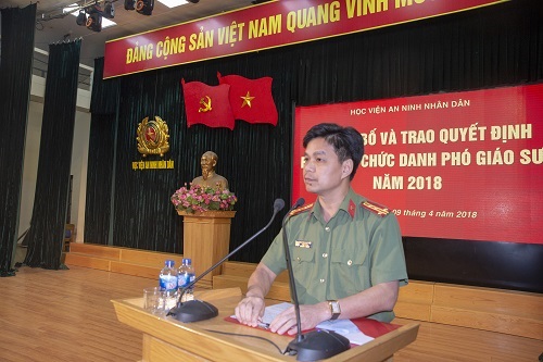 Căn cứ Quyết định của Hội đồng Chức danh Giáo sư nhà nước công nhận đạt chuẩn chức danh Giáo sư, Phó Giáo sư năm 2017 cho các nhà giáo, ngày 09/4/2018, Giám đốc Học viện ANND đã ký và công bố các quyết định bổ nhiệm chức danh Phó Giáo sư ngành Khoa học An ninh cho 07 Tân Phó Giáo sư.