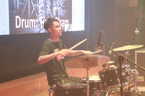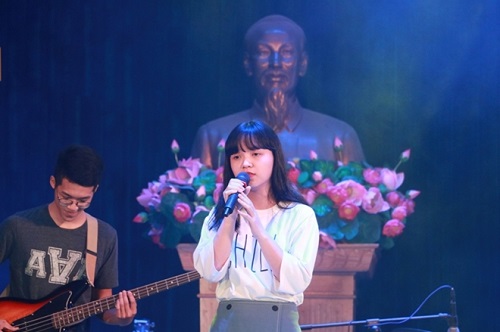 Cả hội trường như 'vỡ tung' khi giọng hát của lưu học sinh Lào đượccất lên trong tiết mụcrock “dễ dàng”. |