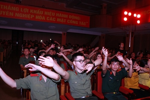 Không chỉ các em sinh viên lên biểu diễn các tiết mục sôi động mà các thầy giáo và